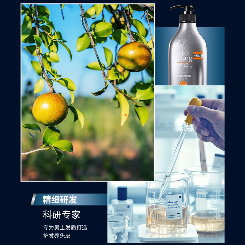 滋源茶籽劲爽控油去屑洗头水含有天然油茶籽配方,温和净彻头皮,无硅油,深层滋养发丝。