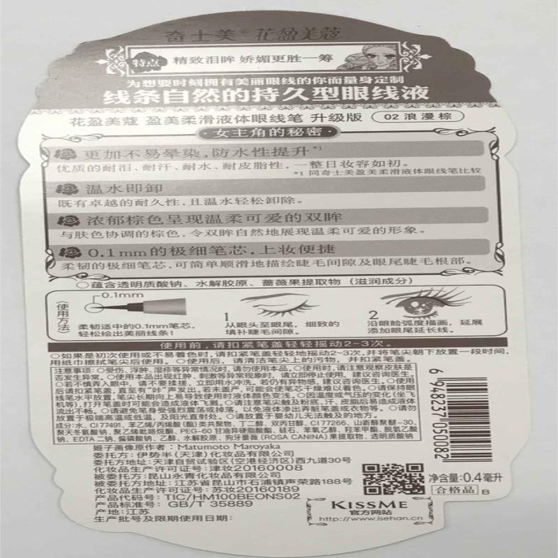 奇士美(kiss me)推出的这款液体眼线笔,采用0.1mm纤细笔尖,可描绘出流畅眼线。添加狗牙蔷薇果提取物、透明质酸等成分,上妆的同时帮助呵护眼周。色泽醇厚,易于上色。同时持妆时间长,防水且不易晕染。设有#浪漫棕和#曜石黑两种色号,可根据妆容需求选择使用。