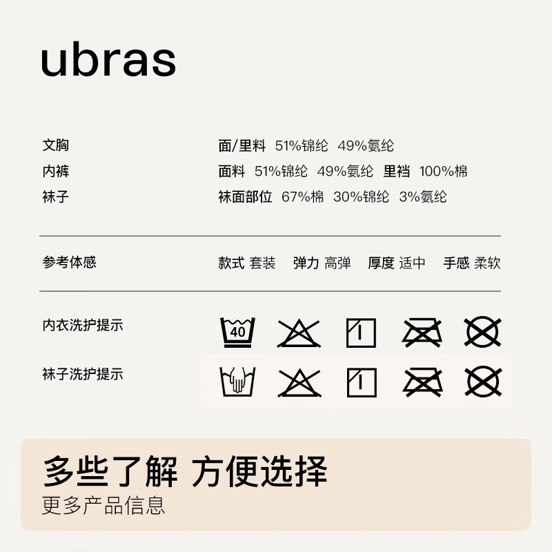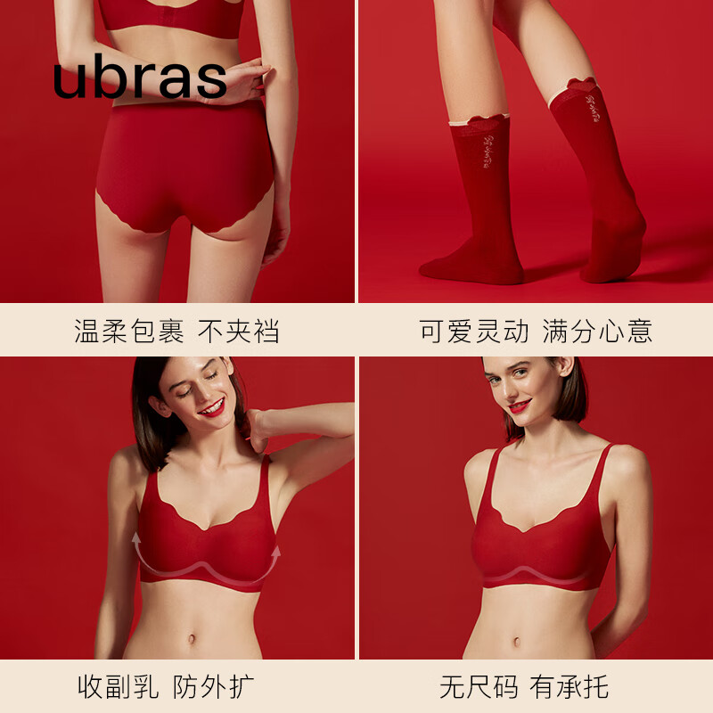 Ubras 女士内衣内裤礼盒装 UZ1224171 侧收提托夹层,收副乳防外扩,低围无感支撑,无尺码有承托,3D立体剪裁,温柔包裹不夹裆,3A抗菌底裆,抑菌更透气,200N高针织造,亲肤透气不易起球。