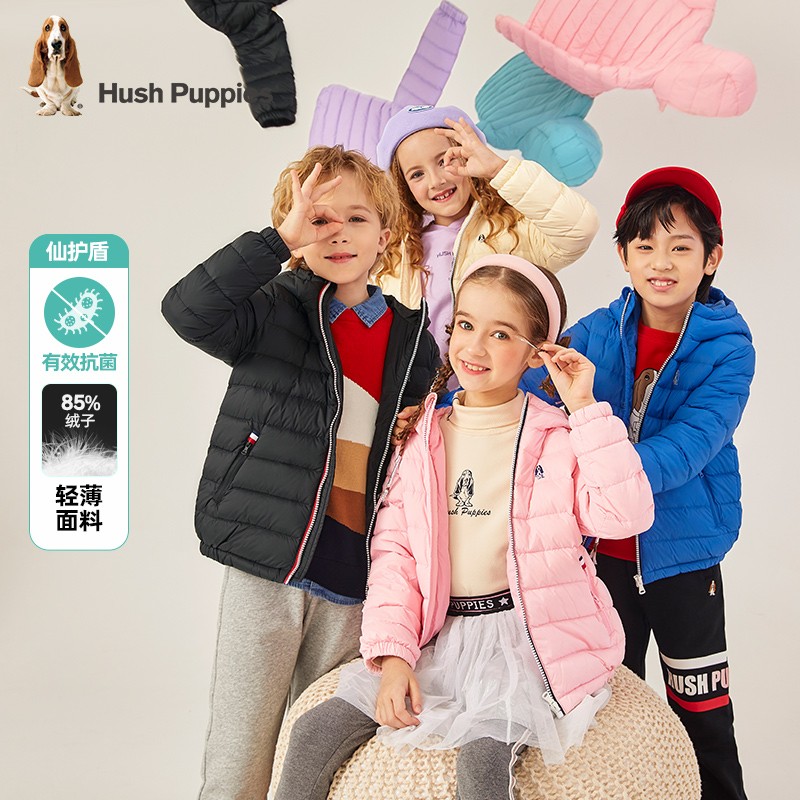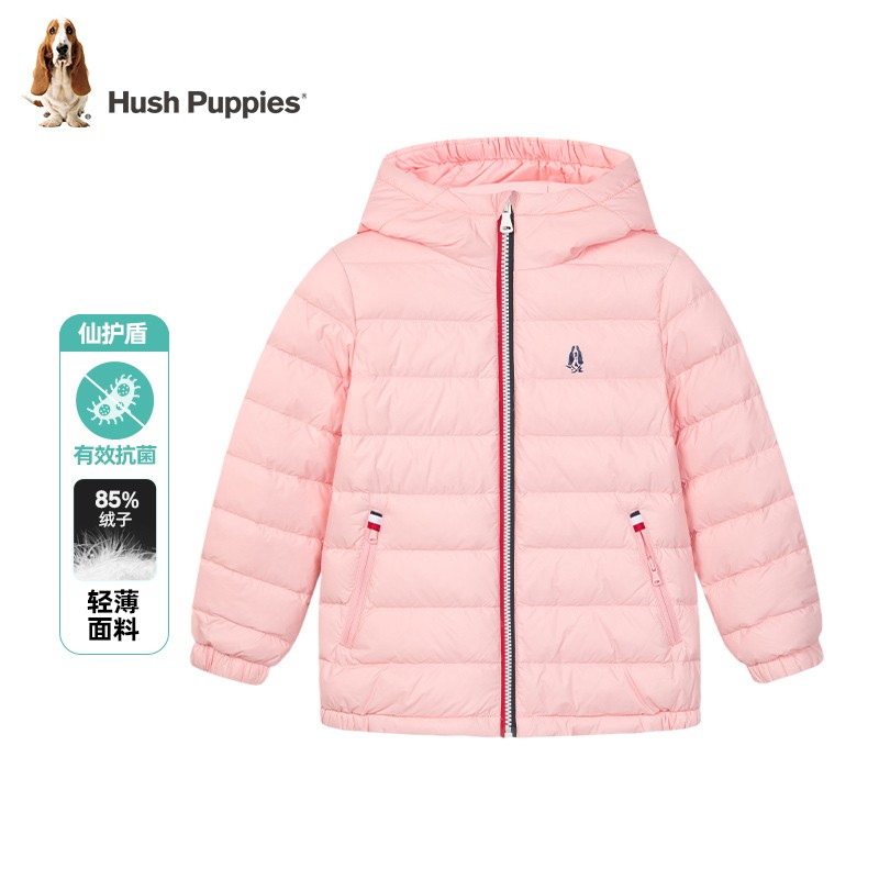 Hush Puppies 暇步士 儿童时尚连帽羽绒服,高密度防钻绒效果,加倍防护,锁住温暖。柔软舒适,手感软糯,轻盈无压力。高拉链门襟,温暖舒适。