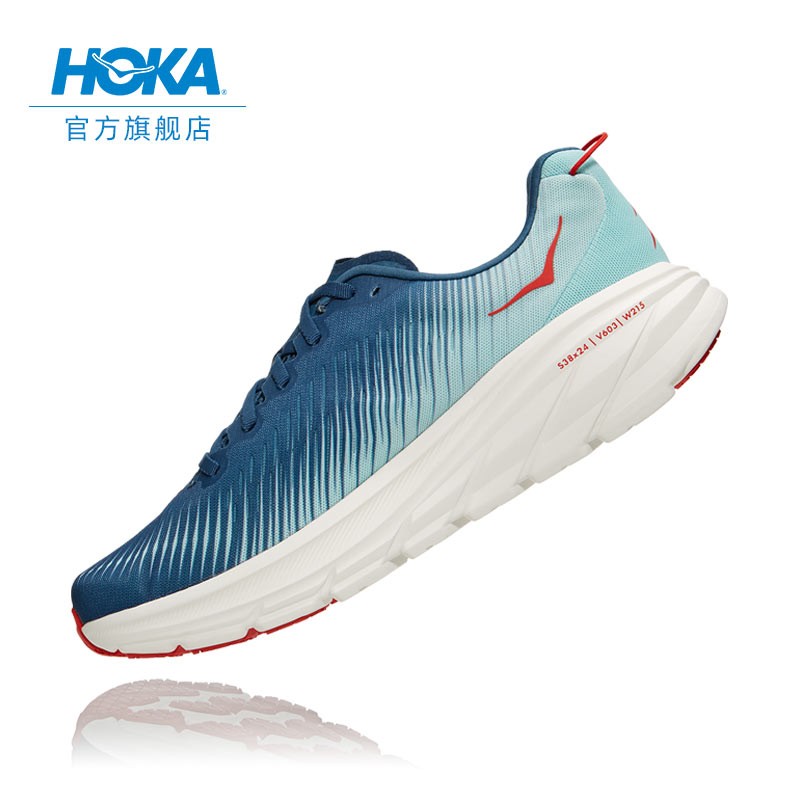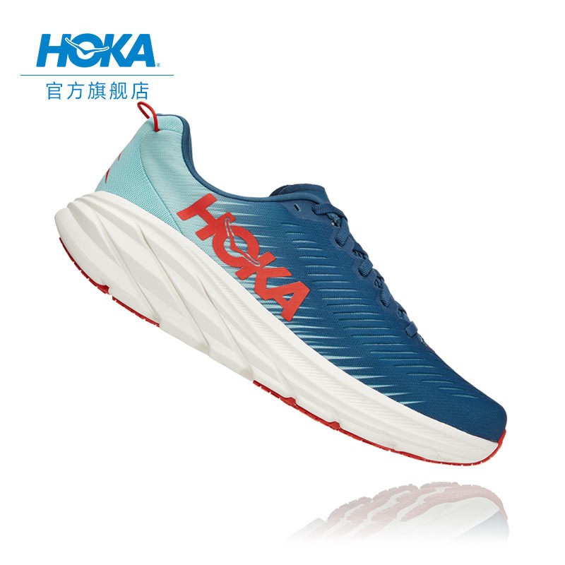 HOKA ONE ONE Rincon 3 男子跑鞋。轻量化 MEVA中底,搭配更轻盈的工程网纱鞋面,带来了轻盈如飞的感受。镂空工程网纱鞋面,轻盈透气无束缚,有助于提高穿着舒适度。林康3代精准调校的 CMEVA中底,在更轻量化的同时,回弹表现更出色。