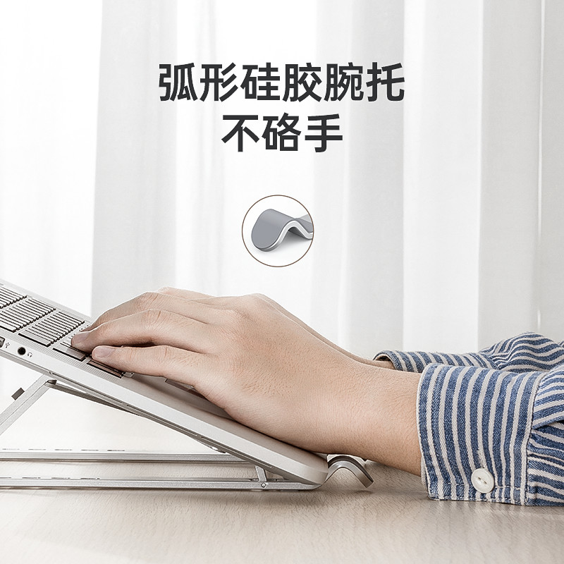 采用仰角设计,有利于坐姿的调整,保护视力的同时更保护颈椎健康。双M拉升结构,支撑更稳定。三角结构,提供强大支撑力。支持7档高度自由调节,全镂空设计,增强空气流通,散热性能更加强劲。弧形腕托设计,圆润不硌手,硅胶包裏提供舒适触感,提升使用体验。