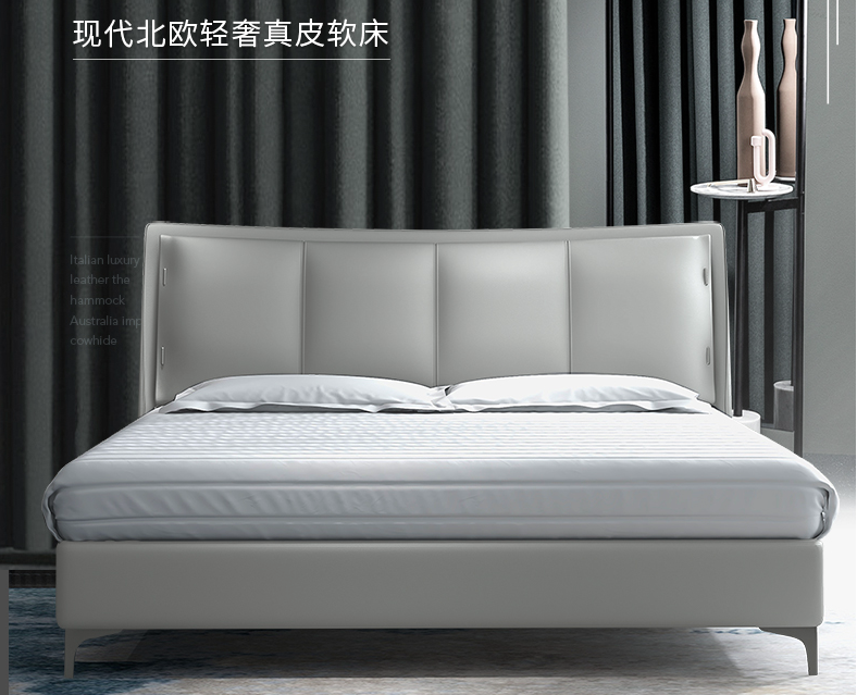 更多1日0点:Sleemon 喜临门 夏洛 现代简约真皮双人床 排骨架款 1.5*2m