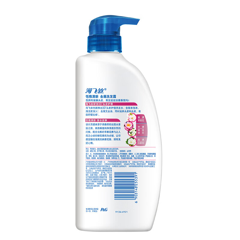 海飞丝去屑洗发水经久不衰,大家并不陌生。这款洗发水含有专业护肤成分,特有去屑滋润双效配方,不但去屑更有效,而且其活力锌配方能使皮肤获得更好的保护,润泽不油腻,可时刻感受清爽活力。且不少网友反馈去屑还是海飞丝的效果好,可是头方法也很重要,切忌不要用力抓挠头皮,打圈按摩的效果较佳。