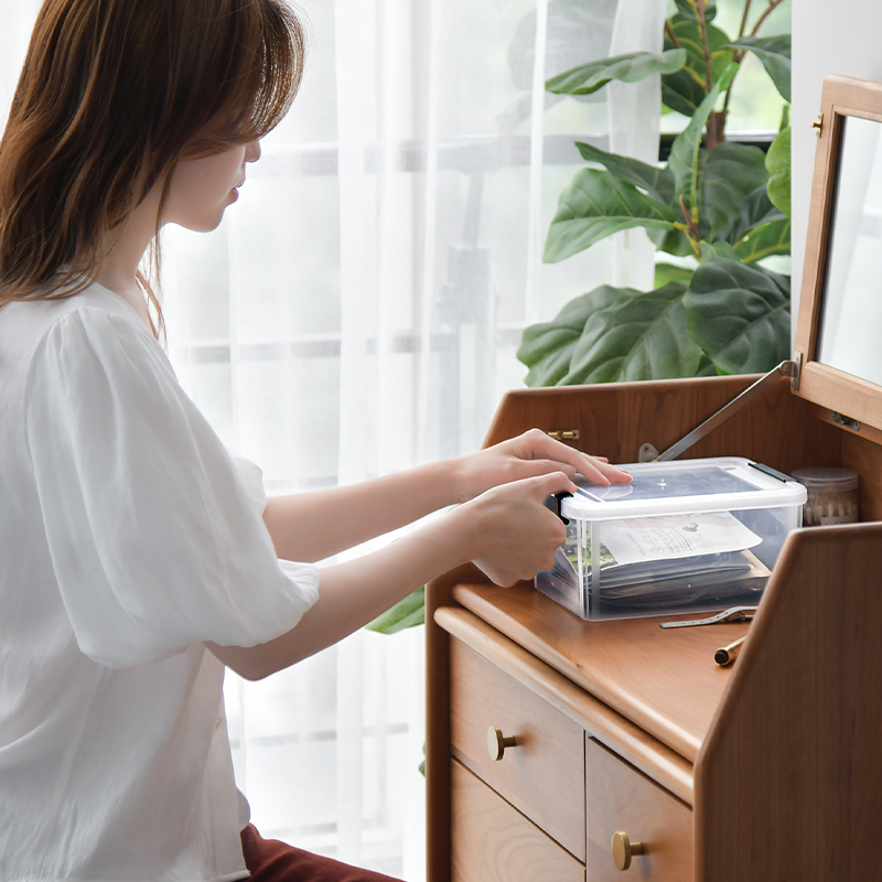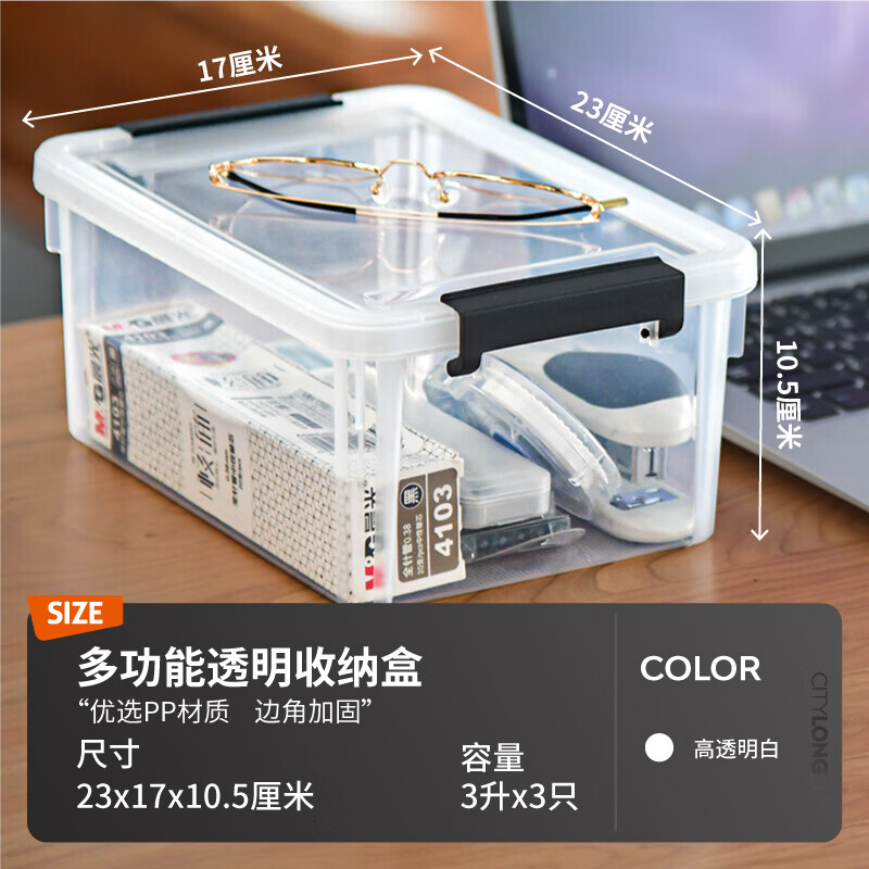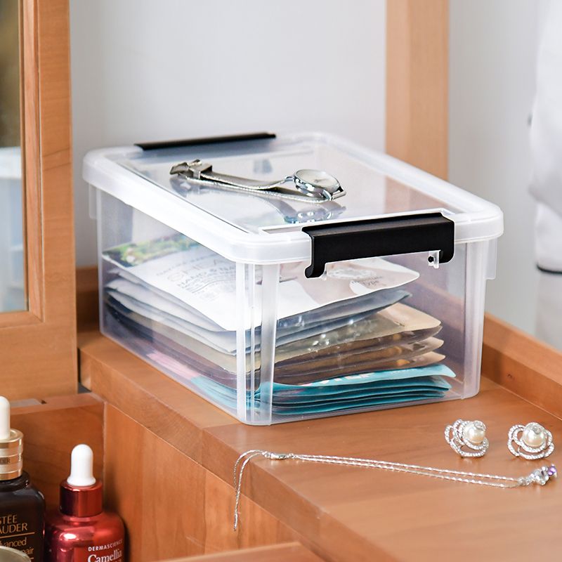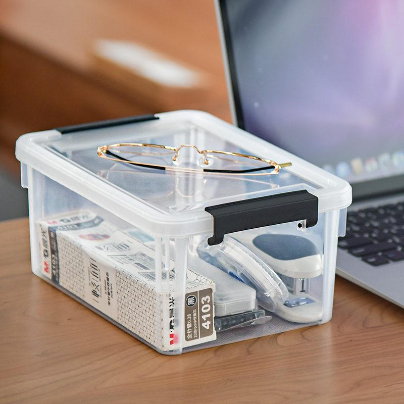 透明文件收纳盒,巧妙利用空间,有序整理文件,迷你尺寸,小物收纳,反扣把手,弧形设计,防止磕碰,阻力适中,密封性高,卡槽设计,叠加稳定,不易倾倒。
