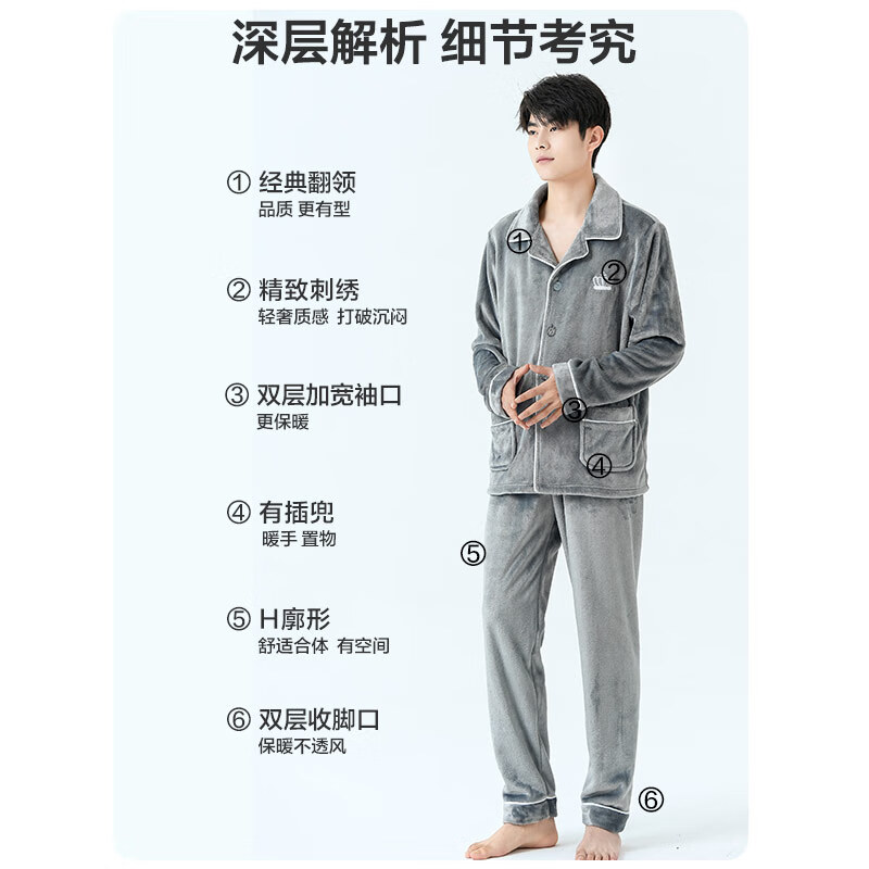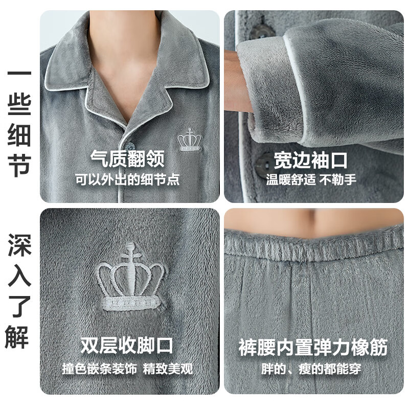 惠寻京东自有品牌 法兰绒睡衣男士秋冬家居服珊瑚绒套装 XXL