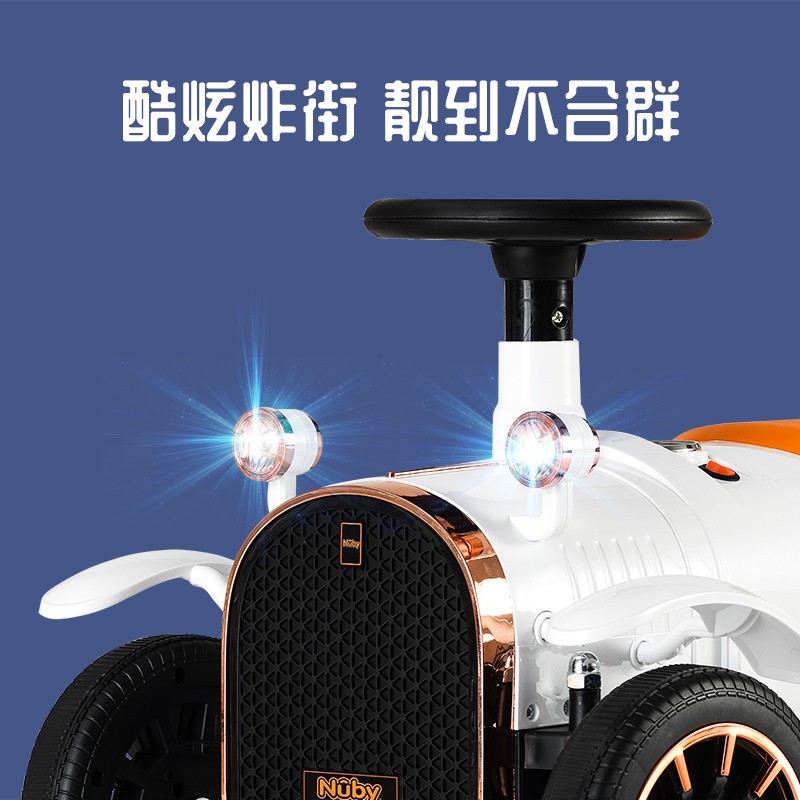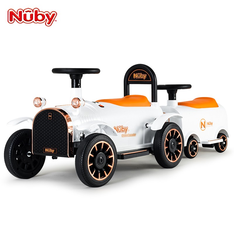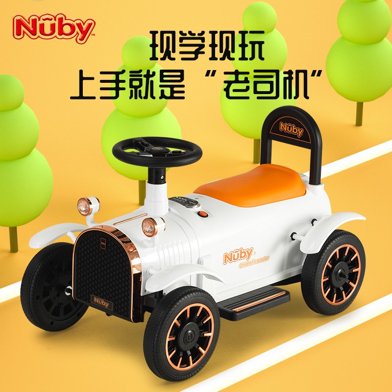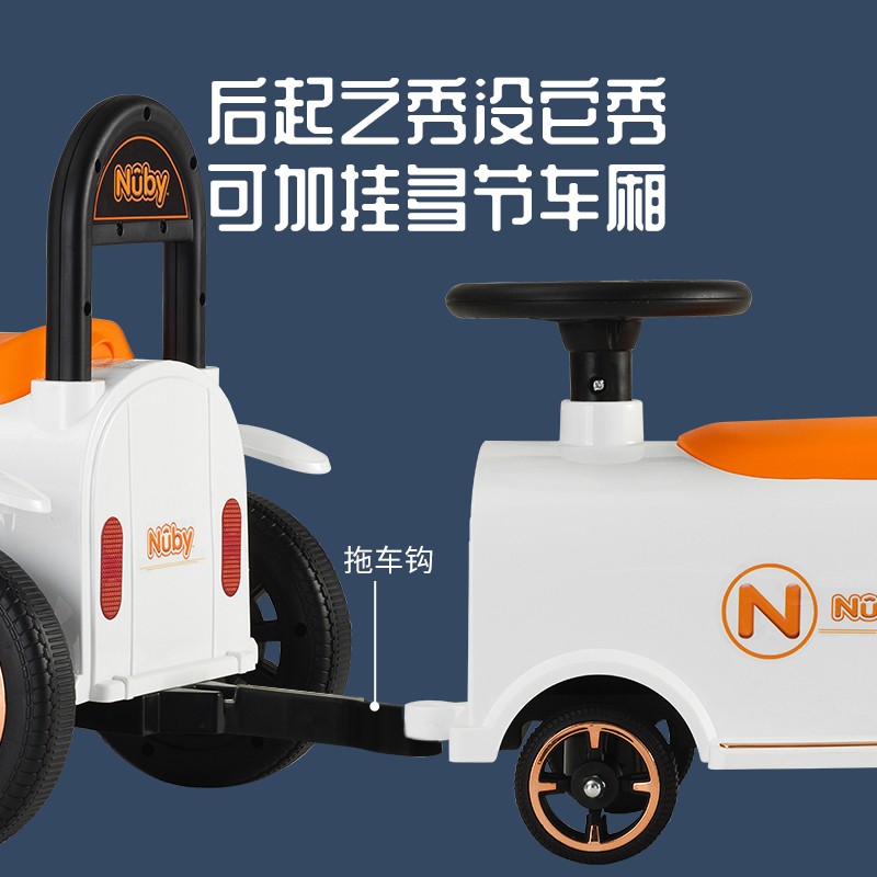 Nuby 努比 儿童电动车 动感车载音乐,一上车就能玩到嗨,可加挂冒节车厢,后轮双驱动,感受速度与激情,强悍承重,老玩童的儿时梦,前进、停止、后退3档操作,脚踏油门启动,宝宝轻松上路,酷炫炸街。