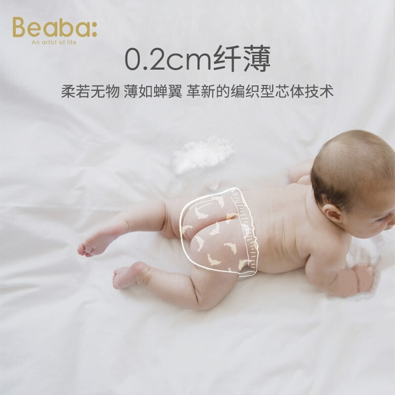 BEABA 盛夏光年 婴儿拉拉裤,盛夏系列,0.2cm纤薄,干爽透气,面层含牛奶蛋白,丝滑柔软亲肤,编制型芯体,不断层不起坨 。