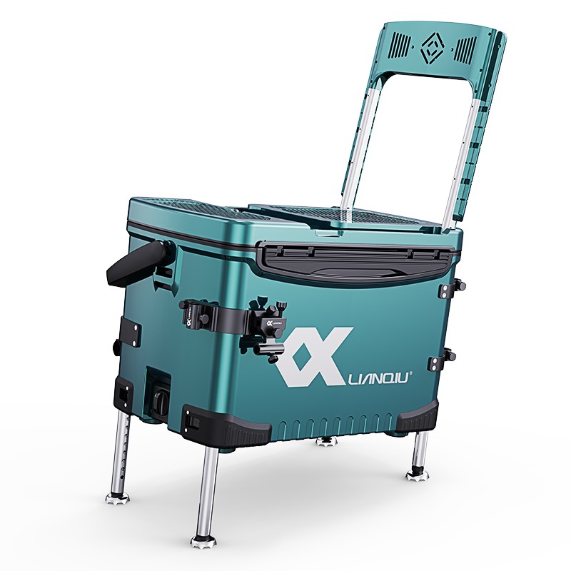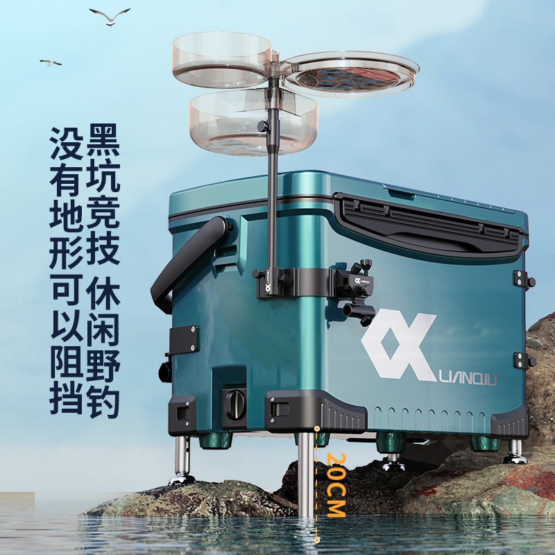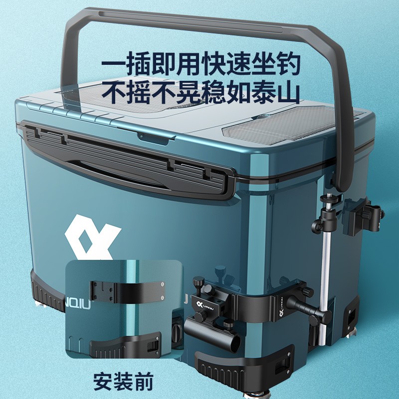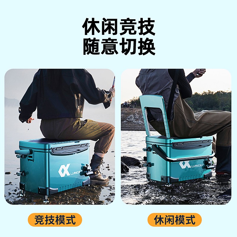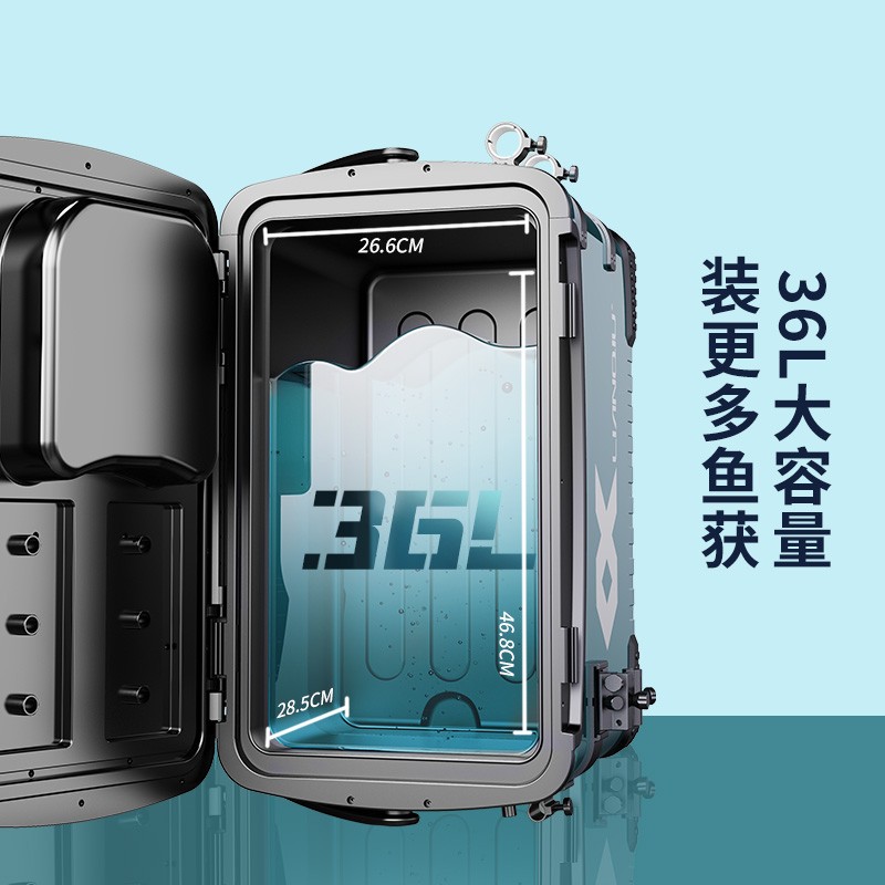 优质树脂造结实箱身,全包围铝合金插座更佳坚固耐用,强磁力分钩让鱼钩更直拉饵更顺畅。靠背可调105度更舒适。竞技休闲随意切换,保护腰背更健康。加长支撑腿有20公分,可以满足任何地形。30L大容量装更多渔获,平时可以存放钓具。前后可随意调换,不需担心装反。