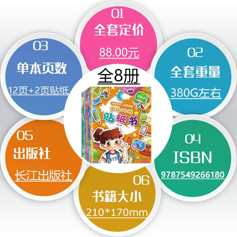 这套《全脑训练贴纸书》集合了一个个构思巧妙、新鲜有趣的场景,用形象生动的图画向孩子们展示了一个多姿多彩的世界。本套书全面激发孩子情商EQ、智商Q、创意CQ上的潜能,让孩子们在看故事的同时体验贴纸的快乐。