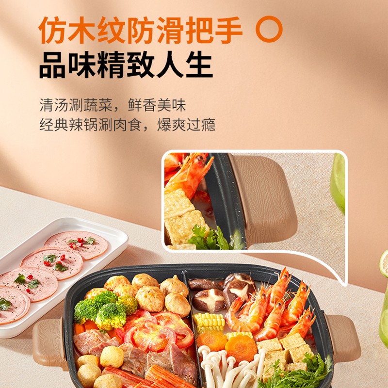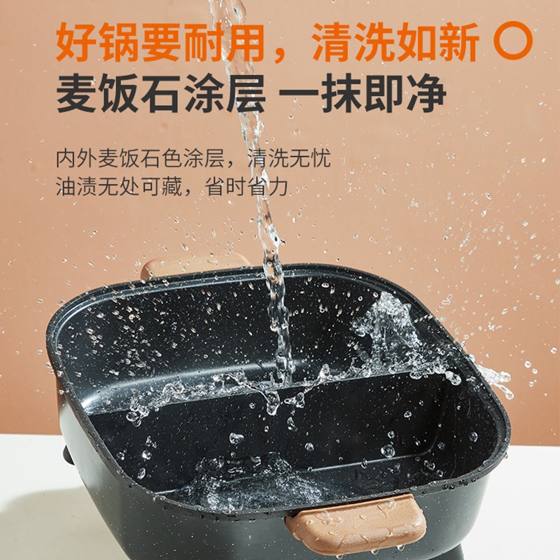 当前的位置: 首页 > 今日值得买 > 九阳(Joyoung) 鸳鸯电火锅6L大容量家用多功能专用锅烧烤一体锅电煮锅宿舍不粘炒锅 G190【6L大容量麦饭石色不粘鸳鸯电火锅】
