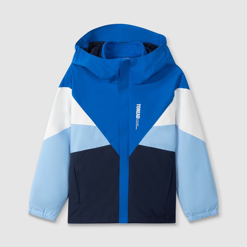 TOREAD kids 探路者 中大童三合一套绒冲锋衣,拼接有型挡住风雨,防泼水套绒冲锋衣。150D聚酯纤维消光塔丝隆面料,复合低水压防水膜,,有效阻隔水分子,同时多微孔透气排湿,户外玩耍也不会闷热。