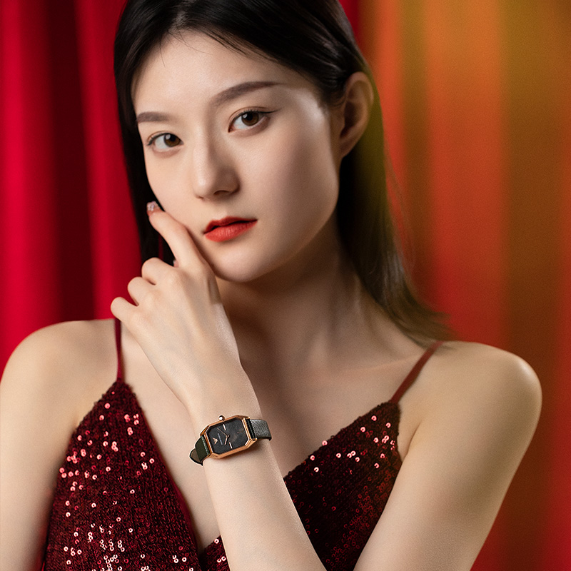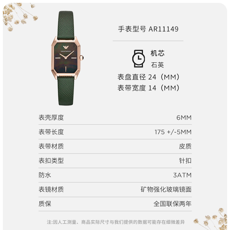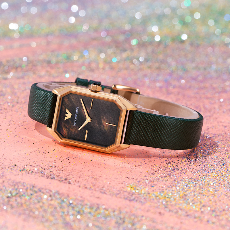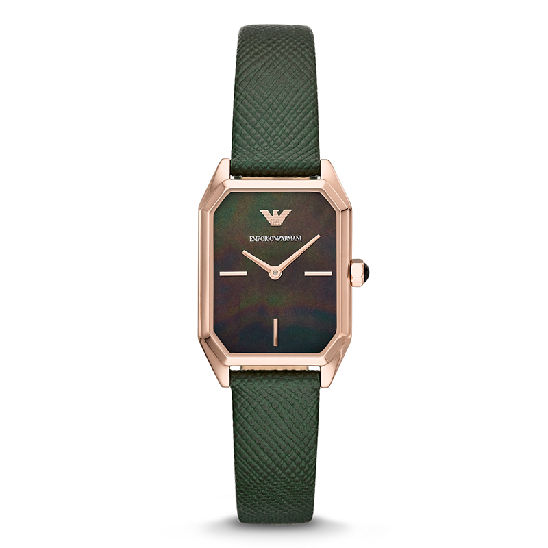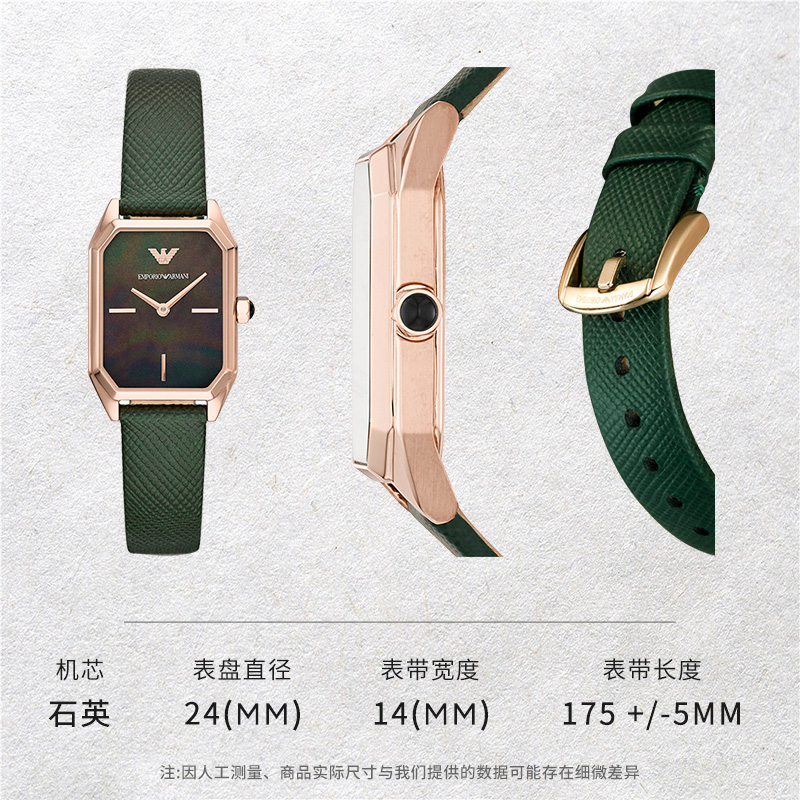 EMPORIO ARMANI 阿玛尼 AR11149 女士小绿表复古方形石英表 黑色贝母多彩表盘,呈现色彩幻变梦幻深邃,搭配简约刻度凸显态度,时间因你而定格~
