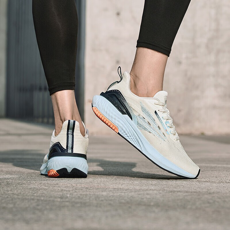 361° E韧 男运动鞋 672212214F,采用了全掌E韧合集,上脚瞬间激活澎湃脚感,将韧弹轻平衡,上脚轻质舒适,回弹好。针对足部各个区域有效包裹,贴合度恰到好处。后跟环形TPU提供平衡与稳固支撑。