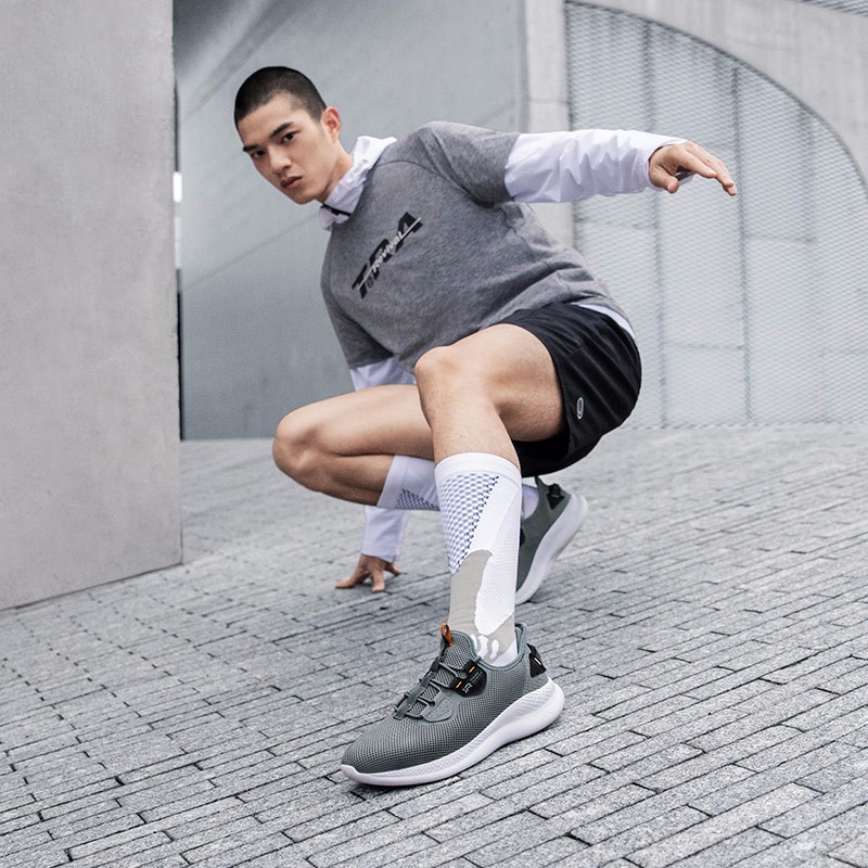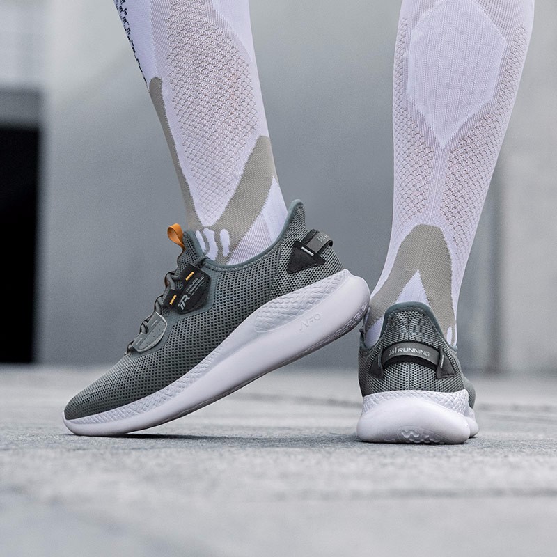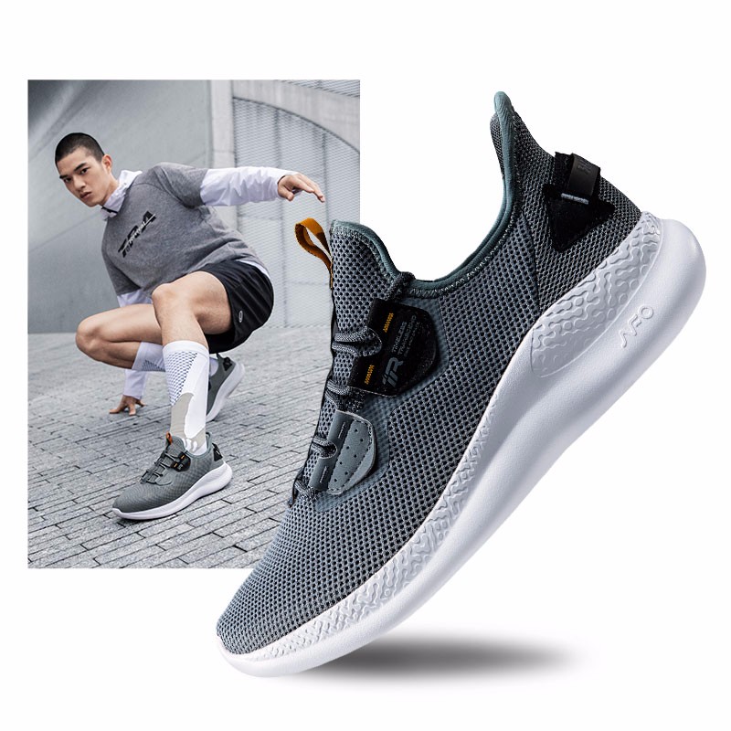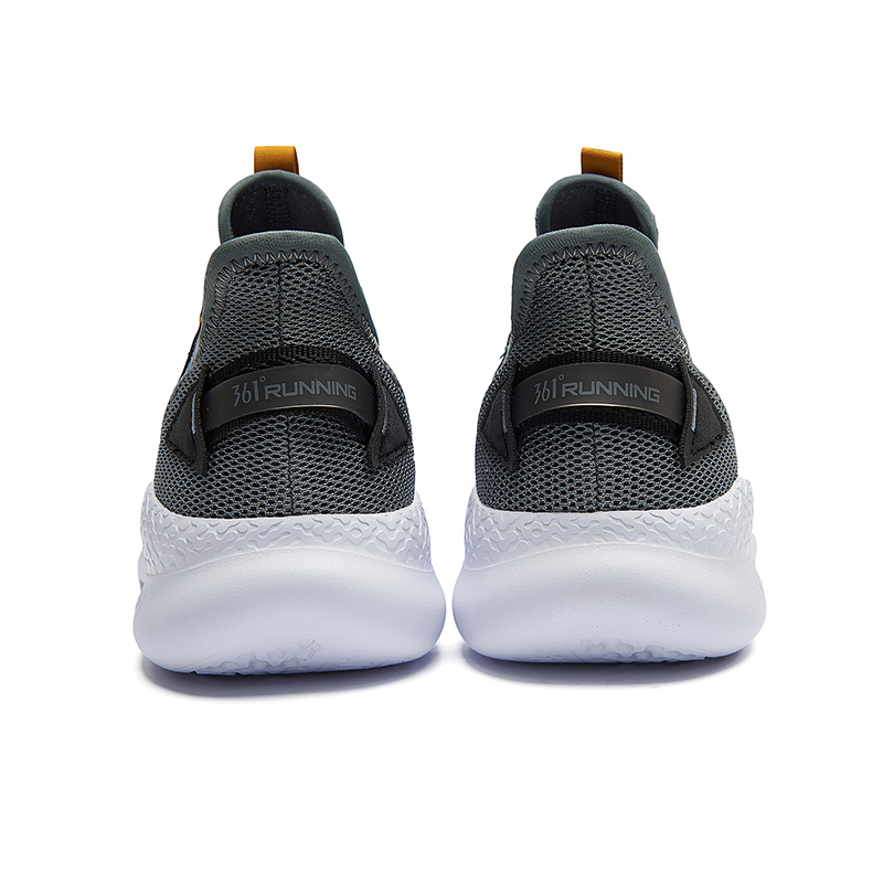 361°推出的这款男子跑鞋,其鞋面主要由网布和合成革制成,质地轻盈,穿着舒适透气。采用一脚蹬的方式,结合鞋舌和后跟提拉带,穿脱省时省力。科学地设计底花纹理,加大与地面的摩擦,提升抓地力的同时起到防滑作用。