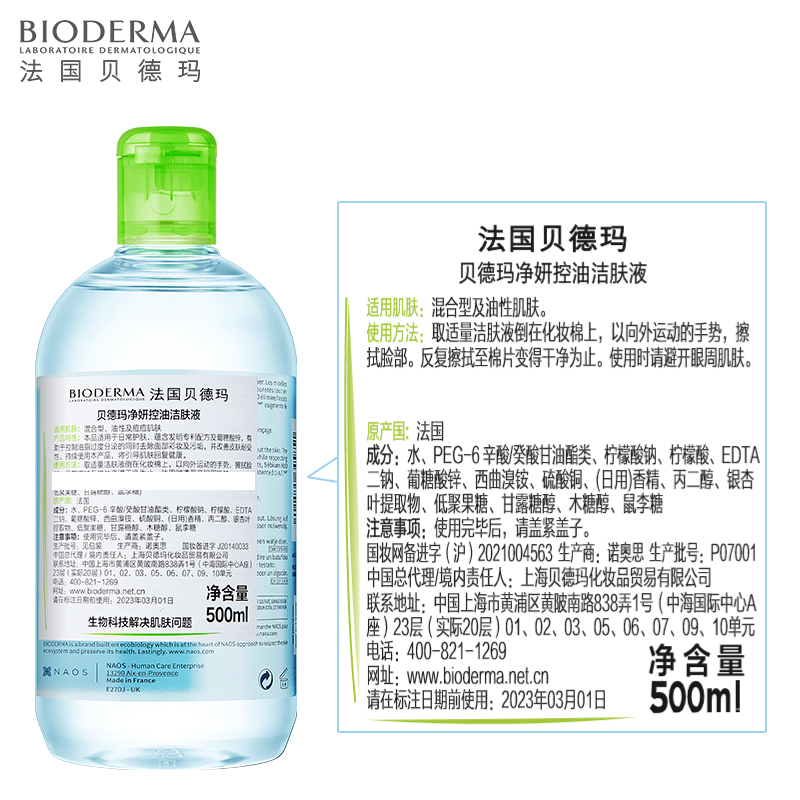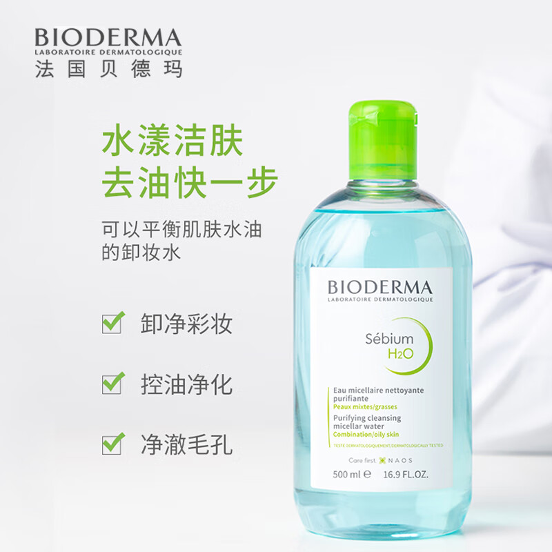 贝德玛卸妆水绿水净妍控油洁肤液500ml 油痘肌油皮护护肤品