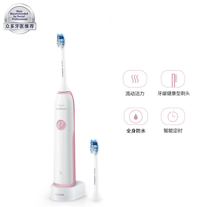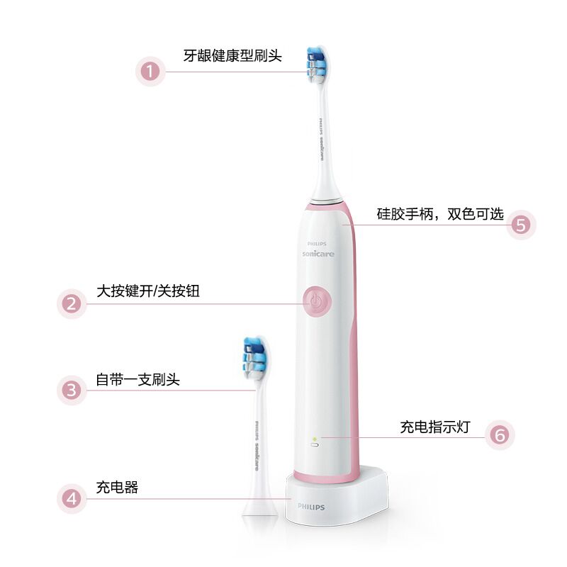 HX3226属于SonicareElite+牙龈呵护系列,主打牙龈呵护。Sonicare专利技术提供高达每分钟23000次刷毛震动和5.5mm刷毛振幅,以高频宽幅的刷毛震动清洁牙齿表面,同时驱动水流,深入清洁齿间,轻松搞定口腔死角。2分钟智能定时程序,能帮你养成正确的刷牙习惯,每30秒分区清洁,均匀清洁整个口腔。配色方面选择了清新的粉色和百搭的黑色,外观设计也趋向简洁,更为耐看。手柄使用了防滑硅胶材质。全机身采用了防水设计。一次充电可以使用10天。内含2支Pro-Results牙龈健康型牙刷头。