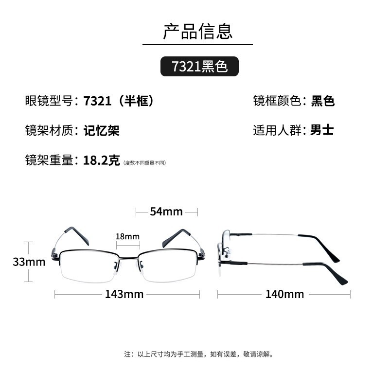 超轻记忆钛架不易折断不压鼻,弹性大,大脸不夹小脸不掉,不挑脸型。细节处尽显高档品质,日本进口1.56防蓝光镜片具有防蓝光辐射、防紫外线、高清耐磨、防水防尘易清洁功能;佩戴更舒适,度数更精准。