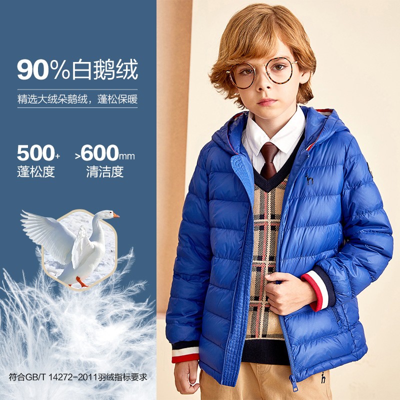 这款采用尼丝面料自然光泽,轻盈细密,防泼水,减少钻绒;领口采用连帽设计,防风保暖,呵护宝宝头部;采用罗纹袖口,保暖舒适有活力;下摆舒适搭配随性。