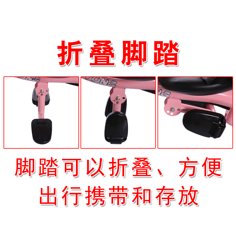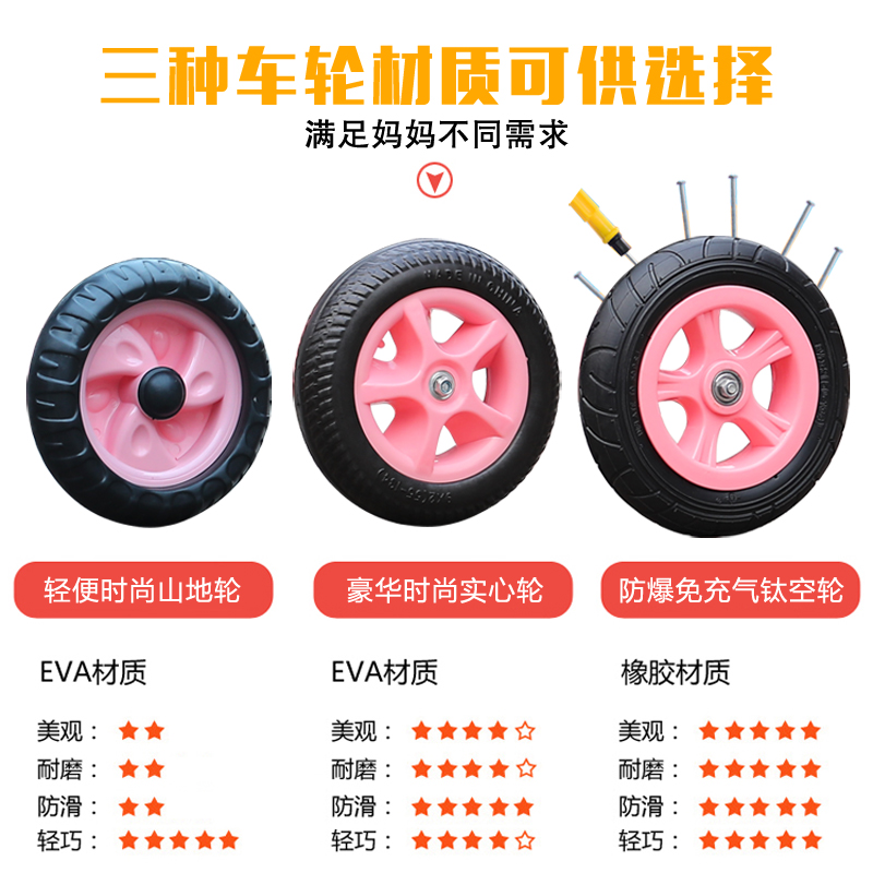 这款脚踏车,旋转豪华发泡轮,带有遮阳伞和音乐,加高靠背手提座椅,宝宝坐得舒适,妈妈推的轻松。