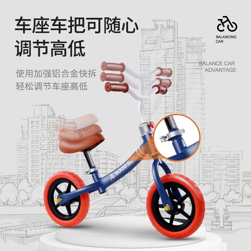 这款米迪象 儿童平衡车无脚踏水性环保,无毒无味油漆,轻量级高碳钢钢管,彩色全新原包,颗粒EVA耐磨轮胎,防滑避震,骑行更舒适,环保无毒无味,车座皮革,不致敏。
