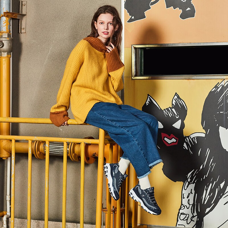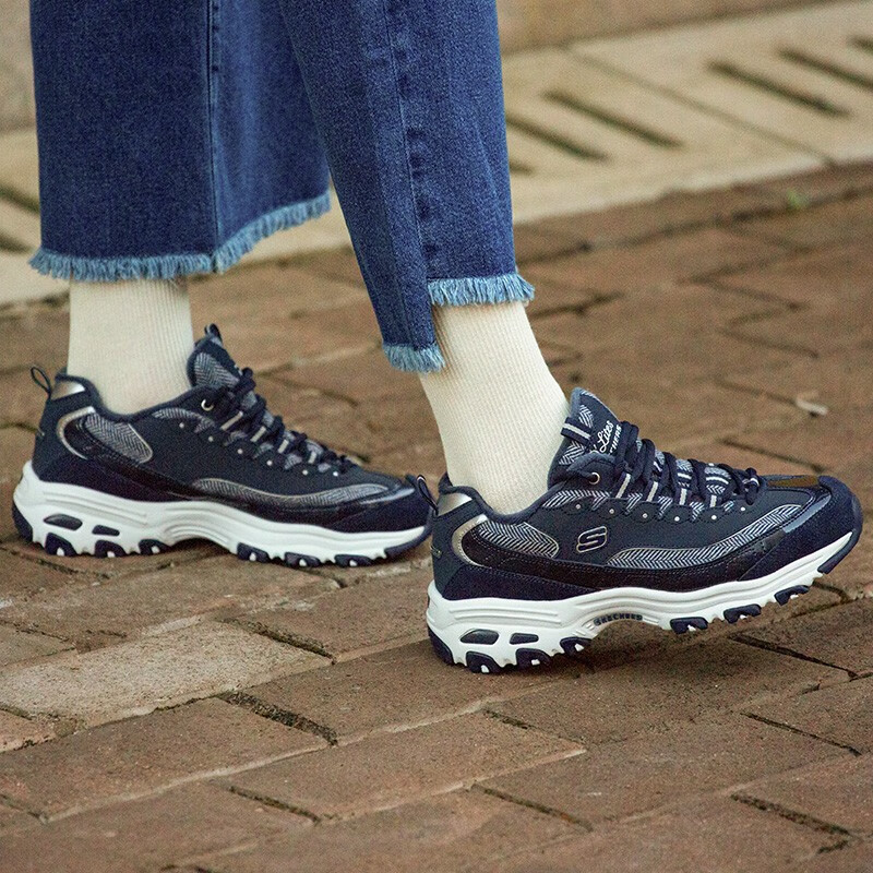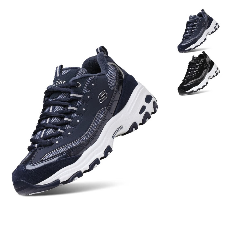 SKECHERS 斯凯奇 D‘Lites 女款休闲运动鞋 66666036,采用加绒内里,从容面对温度下降,酷炫厚底,拉长腿部线条,细条纹毛呢,玩转别样复古风潮。