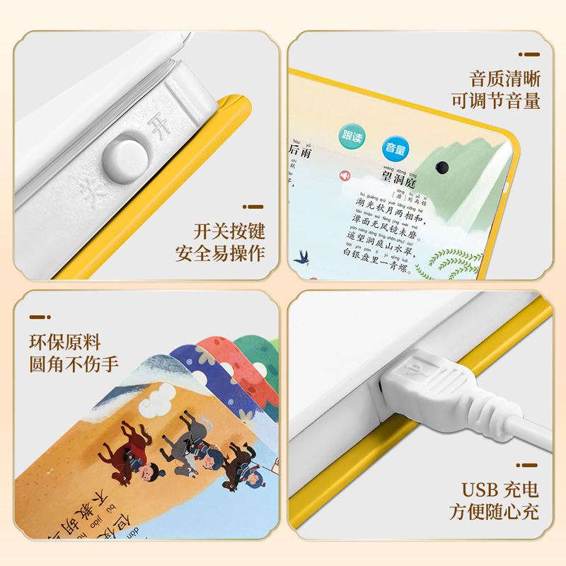 《会说话的古诗词129首》是一本与课标同步、满足3~6岁儿童读者阅读兴趣和成长需要的有声书。本书通过互动有声的翻翻书的形式呈现,与小学语文教材同步,包括1-6年级课本里116首古诗词,拓展初中7年级课本7首古诗词和经典唐诗6首,共129首古诗词,内容丰富,可以让孩子轻松进行幼小衔接,拓展知识。