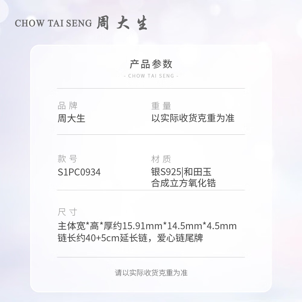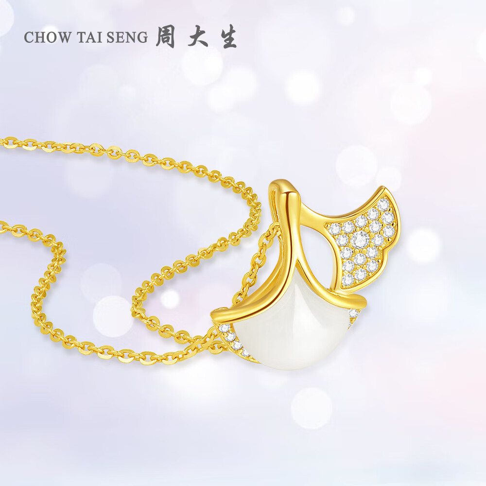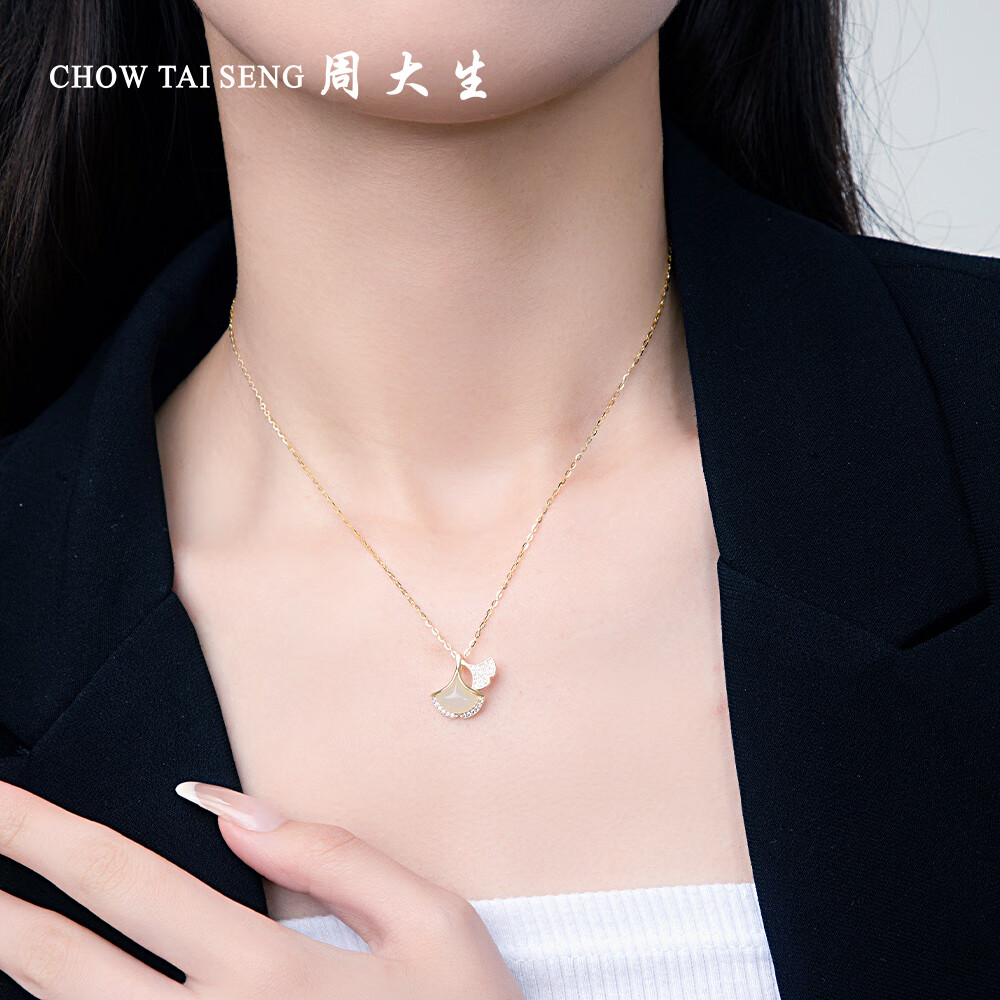 CHOW TAI SENG 周大生 杏相遇S925银项链 S1PC0934,银杏寓意着长青,祈愿我们感情长青,寓意着纯情,祈愿我们永葆纯真,寓意着幸运,祈愿我可“杏”运有你,银材质打造复古美气质,可作为礼物送给爱人、家人或朋友,表达祝福