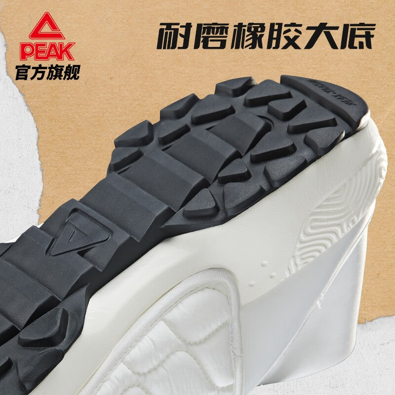棉拖鞋一般的造型,搭配舒适为核心的鞋楦,如拖鞋一般舒适不勒脚,不论你在家抑或是出门,都可以一鞋搞定,免去你的换鞋麻烦。鞋底更加软弹舒适,解决长距离走路时鞋底死硬导致的脚酸、脚累。贾卡软质后跟,柔软不磨脚,避免了很多板鞋、面包鞋的后跟带来的磨脚。采用匹克轻量化橡胶,户外机能风的设计语言,搭配功能性防滑底纹,够厚实,也够防滑。