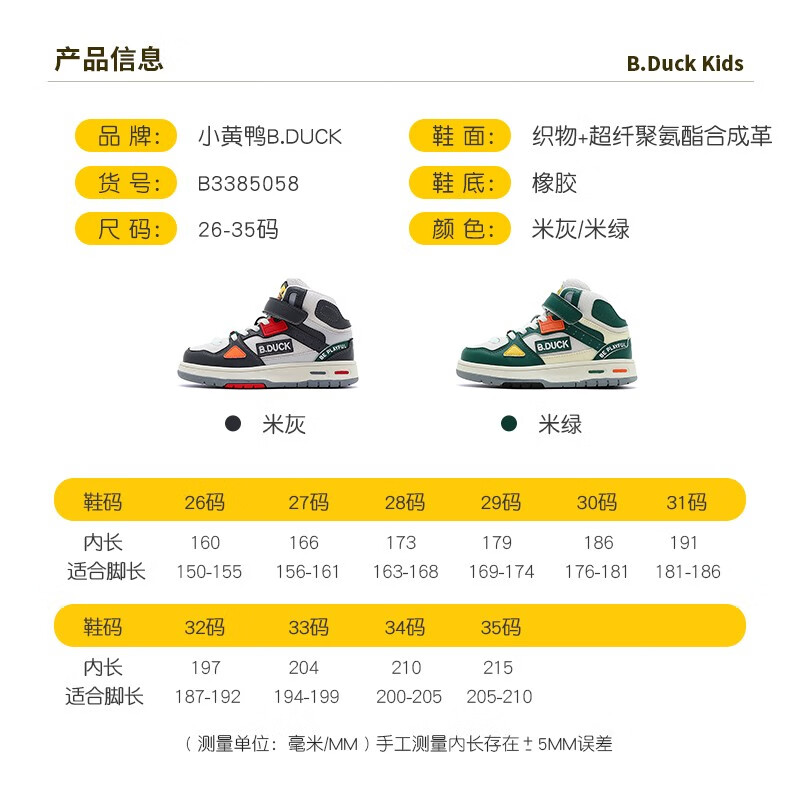 当前的位置: 首页 > 今日值得买 > B.Duck小黄鸭童鞋男女童高帮板鞋秋季新款运动鞋中大童防滑休闲鞋 米/灰 33码内长约204mm