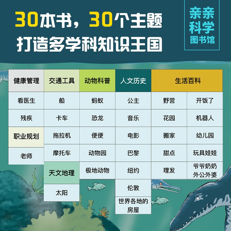 《亲亲科学图书馆》是一套专为3~6岁的儿童量身打造的科学启蒙图画书,引进自法国米兰出版社(Editions Milan),内容包罗万象,风靡法国,畅销数年不衰。文字简短,有教育意义;知识中穿插有趣的情景故事,让孩子在轻松活泼的氛围中,亲近科学、热爱科学。系列中的每一册分别围绕一个主题,多角度诠释,培养孩子的发散性思维;多学科编排原则,为孩子认识世界赋予更加广阔的视野。本系列插画作者都是法国著名的童书插画师,全系列大多采用生动活泼的场景插画,使孩子们有亲临事物现场的感觉,从而在心灵和视觉上会有深刻的感受。这次出版的《亲亲科学图书馆》礼盒装共有30册,包括5~7辑。