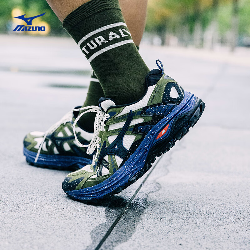 鞋面采用牛剖层革+织物+合成革,舒适有质感,热熔炉加固和防踢鞋头,为运动保驾护航,鞋身颜色灵感来源于,丛林与蓝天,红色和荧光点缀其中,有趣俏皮。