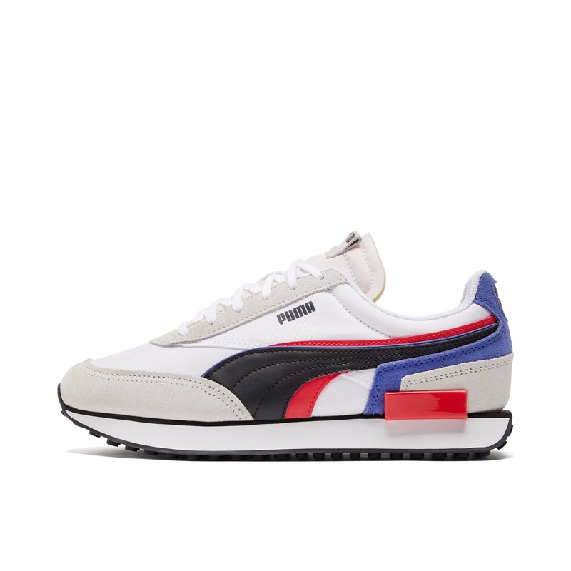 PUMA 彪马 Future Rider Double 女款休闲运动鞋 380639 ,织物与绒面革拼接设计,柔软耐穿且自带复古感。扁形系带系统,牢固不易散落。红色方块装饰后跟,低调提升潮流调性。