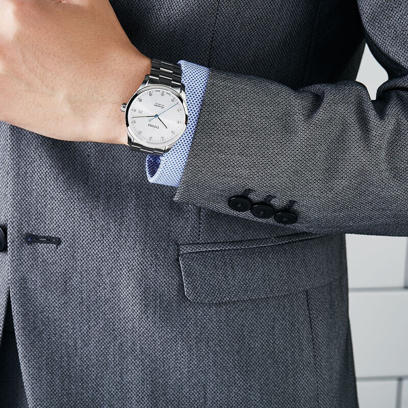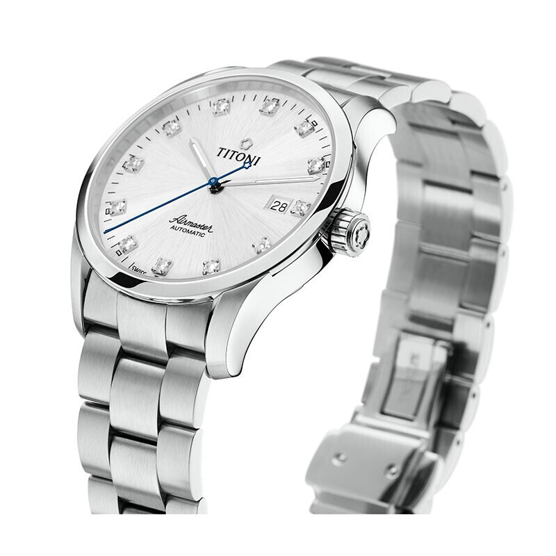 TITONI 梅花 空霸系列 男士机械手表 83743 S-581 空中霸王系列的诞生灵感来自于1969年人类首次登陆月球的伟大时刻。是十年来,此系列的设计在保有经典风格的同时不断创新。空中霸王系列皆采用高质量零件,是瑞士梅花表历久弥新代代相传的经典之作。自动陀上带有钻石切割图案,刻有黑色品牌标志,18k镀金自动陀。双向上链自动陀,动力储存40小时,时标以12颗锆石制成。商务风格。