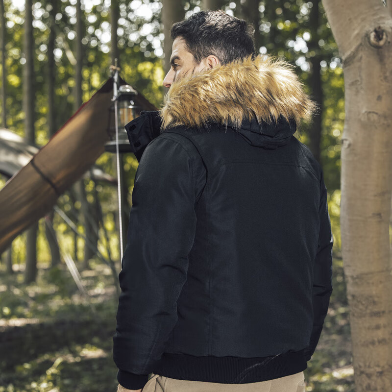 Akseries 男士短款羽绒服 2211401。70%-79%含绒量,灰鸭绒填充物。防泼水材质,舒适透气。可拆卸毛领设计。