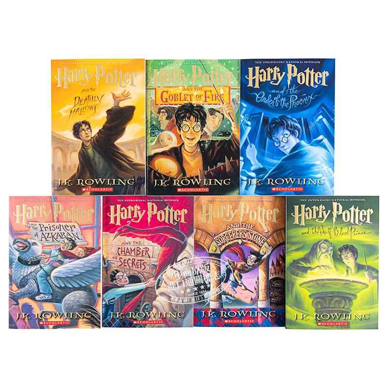 共有《哈利·波特与魔法石》《哈利·波特与密室》《哈利·波特与阿兹卡班囚徒》《哈利·波特与火焰杯》《哈利·波特与凤凰社》《哈利·波特与混血王子》《哈利·波特与死亡圣器》七部。其中前六部以霍格沃茨魔法学校(Hogwarts School of Witchcraft and Wizardry)为主要舞台,描写的是主人公——年轻的巫师学生哈利·波特在霍格沃茨前后六年的学习生活和冒险故事;第七本描写的是哈利·波特在第二次魔法界大战中在外寻找魂器并消灭伏地魔的故事。