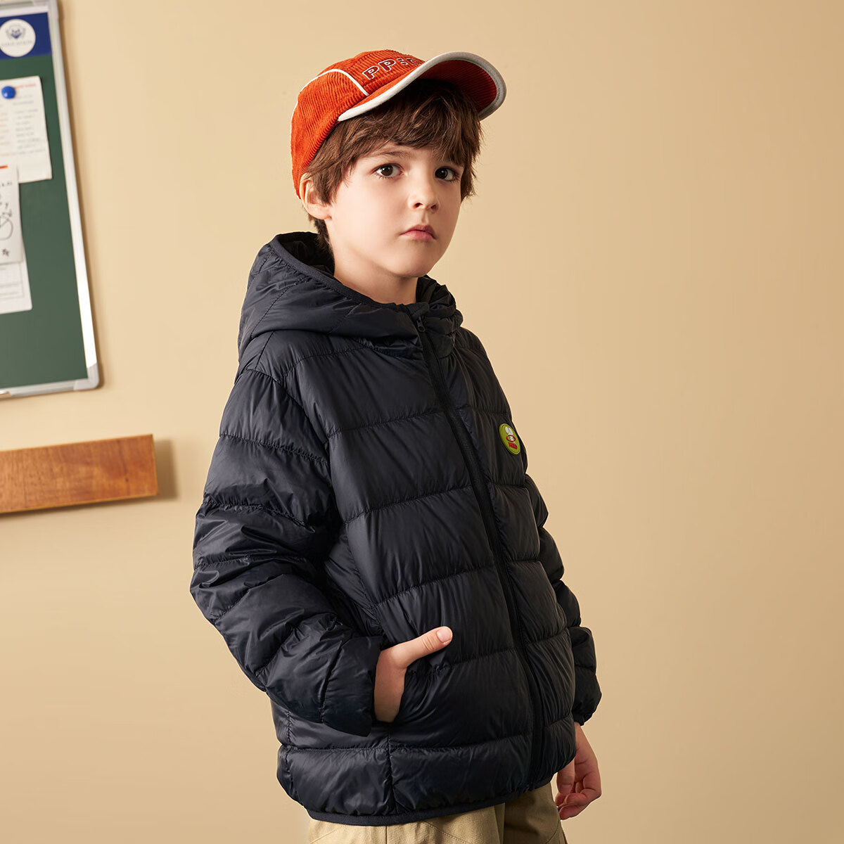MQD 马骑顿 儿童连帽羽绒服,含有90%的白鸭绒填充,轻柔保暖不压身,科技保暖,蓄热升温,温暖过冬。萌趣卡通图案设计,多款可选。