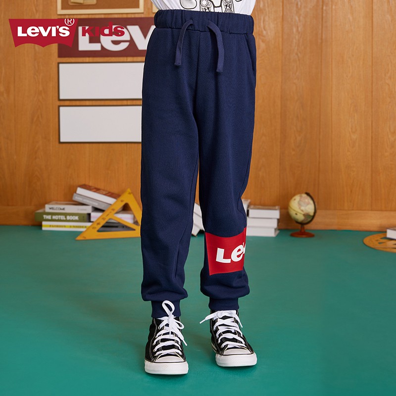 Levi's 李维斯 儿童休闲运动裤 海军蓝,螺纹收口设计,自由蹦跳无压力,多色可选,满足不同宝宝需求,快速聚热优选绒,360°锁住温度柔软保暖,厚度看得见。