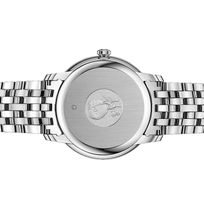 这款 OMEGA 欧米茄 碟飞系列 424.10.40.20.02.005 男士机械腕表,采用瑞士机械机芯制成,罗马数字刻度显示,纤巧剑形大三针,3点钟位置日期显示。优雅白盘搭配银色精钢表壳及腕带,大气耐看。耐刮擦蓝宝石水晶镜面,表径39.5mm,厚度10mm,支持生活防水30米。