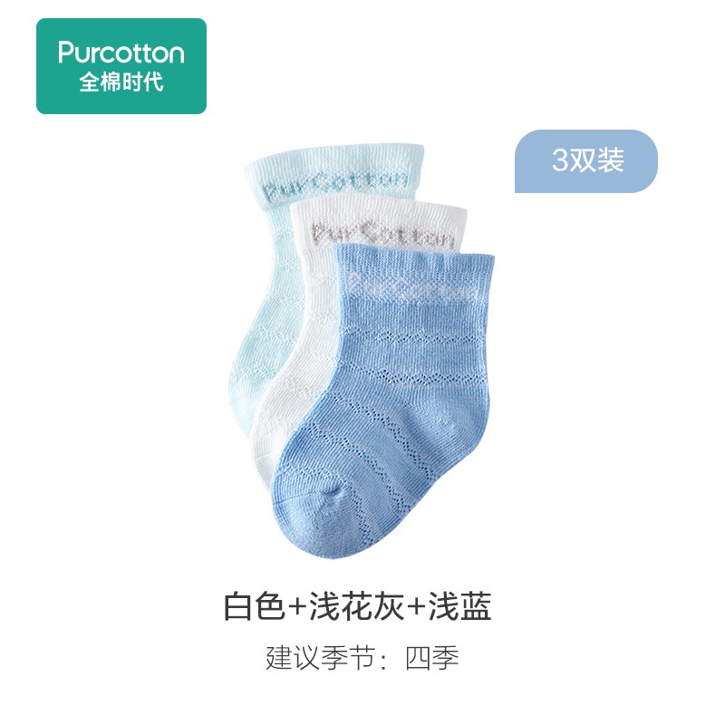 Purcotton 全棉时代 婴儿纯棉中筒袜 7.5cm,柔软精梳棉,透气不闷,不勒脚,不添加荧光增白剂,甄选阳光棉,宝宝穿着如踩棉朵,温暖包裹,柔软透气~