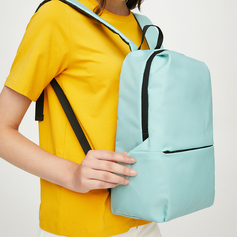 该电脑双肩包面料采用涤纶,里布为聚碳酸酯,容量20L,尺寸为25.5*38.5*15.5cm。采用防水面料,有效抵挡雨水侵袭,可达国标3~4级,保护包内物品不易潮湿。包型简洁大方,最大可容纳14英寸笔记本,多种颜色,旅行逛街时尚搭配。