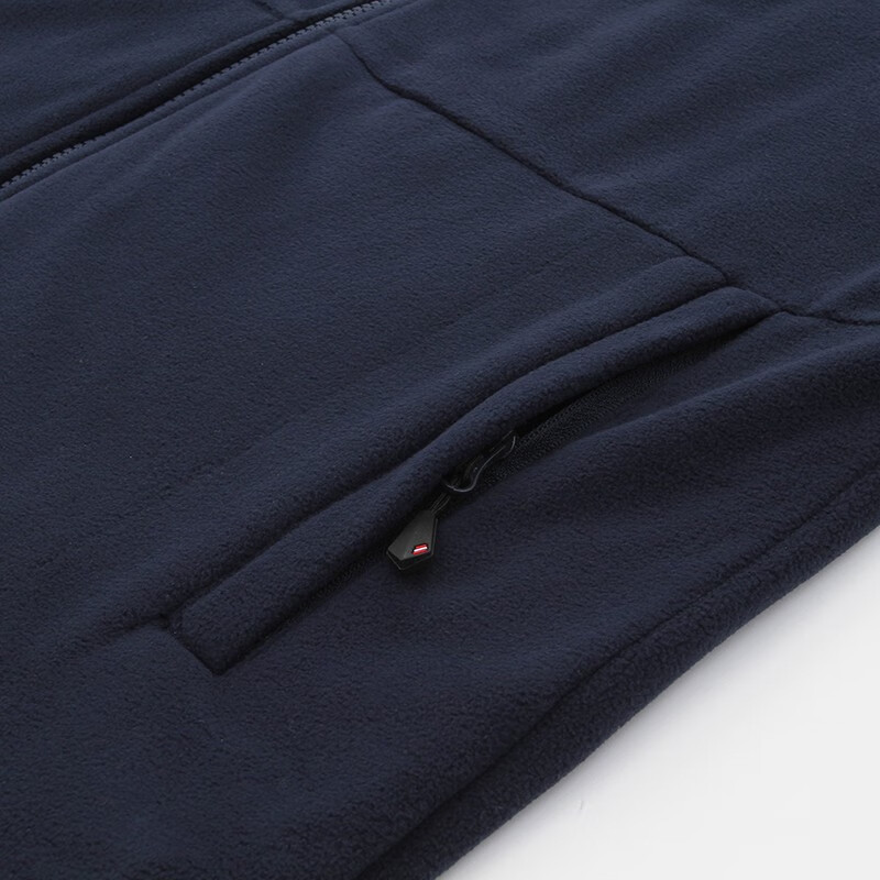 这款抓绒衣可搭配冲锋衣内胆使用,两侧口袋设有拉链,防止物品滑落。下摆单手调节抽绳,防止寒风灌入。