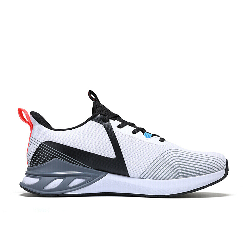 鞋面以透气网布辅以胶印工艺进设计,轻柔包裹双脚的同时更进一步丰富视觉层次,时尚大方。中底采用魔弹科技,柔软舒适,缓震回弹,有效减轻跑步过程中脚步落地的冲击力。