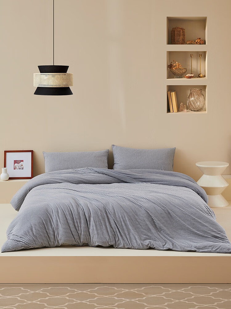 当前的位置: 首页 > 今日值得买 > 网易严选 【新疆长绒棉】 针织条纹四件套 可裸睡纯棉件套全棉针织棉 床上用品床单床品被套被罩枕套床笠 【升级】细条纹丁子灰 1.5m床:适用2mx2.3m被芯*床笠款