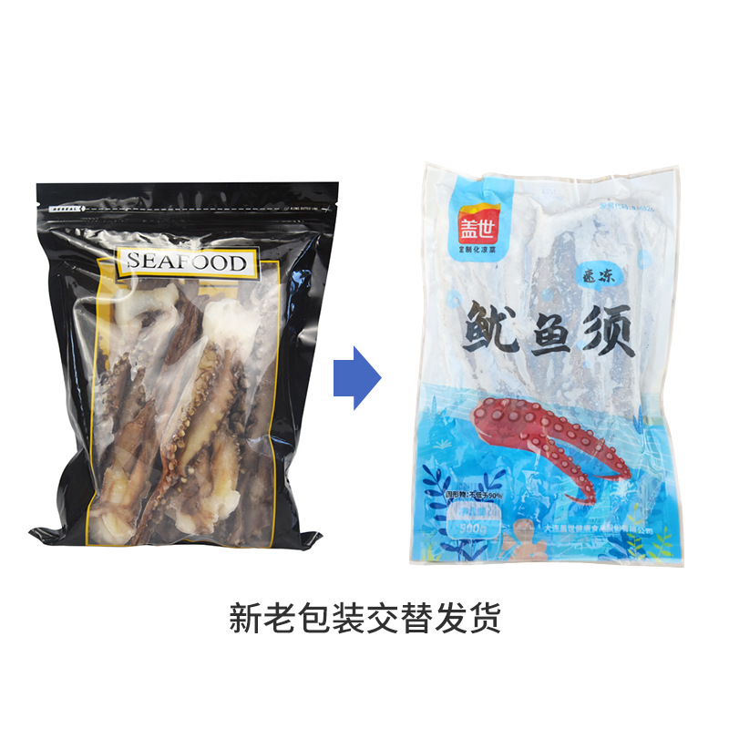 gaishi 盖世 冷冻鱿鱼须选用鱿鱼身上最长最厚的二本足,个头很大更加霸气,深深的满足感,肉质更加细腻,口感劲道,通过工厂低温进行精选加工制作,方便家庭烹饪,加入辅料烹调后鲜味浓郁,规格:500g。