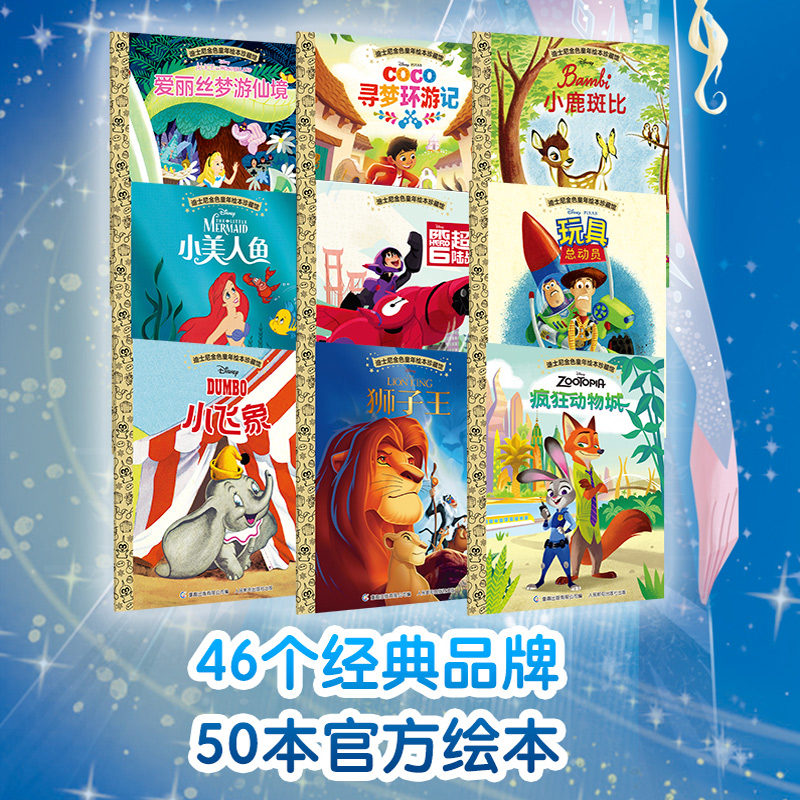 《迪士尼金色童年绘本珍藏馆》收藏迪士尼旗下46个经典品牌,50本图画故事囊括了迪士尼历年大电影和经典动画,从《三只小猪》《罗宾汉》到《狮子王》《白雪公主》再到现象级的《冰雪奇缘》《寻梦环游记》,全部收录其中,书中插画由迪士尼御用插画师精心创作,风格极具想象力和美感,让孩子在经典故事中收获爱与成长、梦想与希望,冒险与想象,教会孩子勇敢、坚强、自立,也影响着他们成长中的性格塑造和情商培养,这套书籍不仅可作为亲子读物,也可作为孩子自主阅读的桥梁书籍。