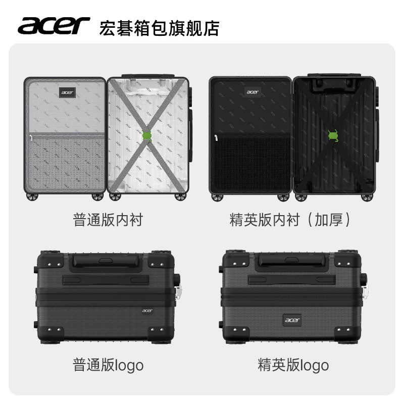 acer 宏碁 obg110 罗威纳系列 PC拉杆箱 20英寸,经典竖条纹+顶部渐变设计,7个潮流配色方案。箱体采用ABS+PC的复合材质,在柔韧轻便同时也具备极强的抗冲击能力,表面采用耐磨涂层,4个加厚防撞包角,不惧碰撞。轻量化设计,快速登机/上车。