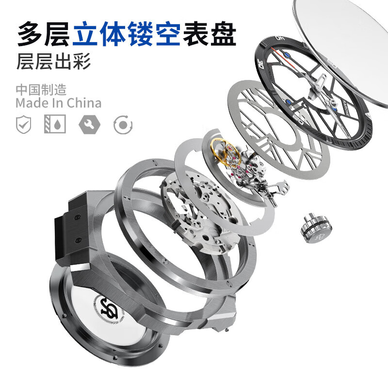 当前的位置: 首页 > 今日值得买 > 雷诺(RARONE)手表 解构派双子星RebelX男士机械男表潮酷腕表 星空钛