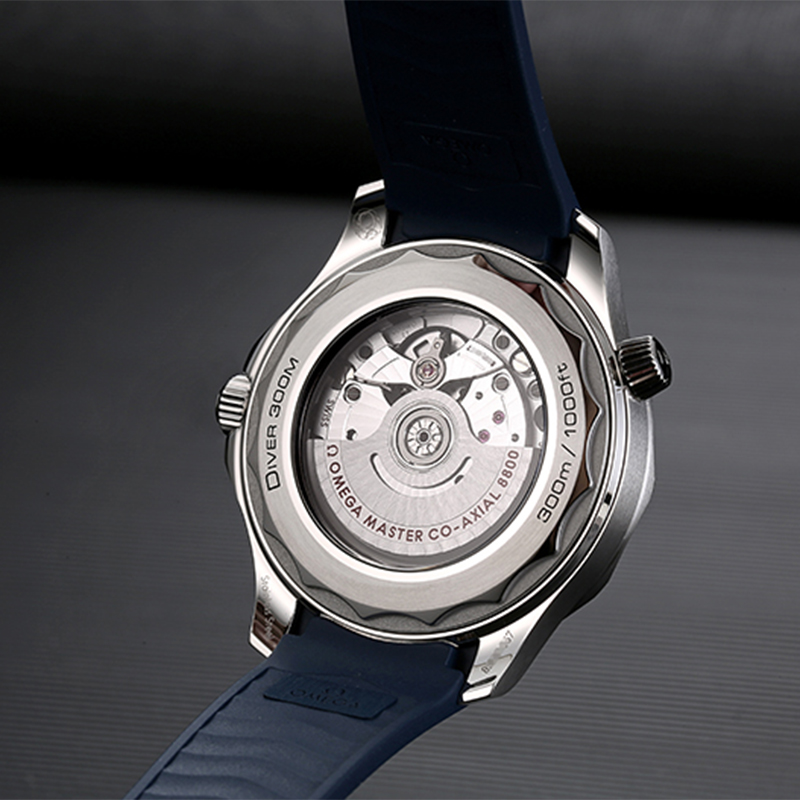 欧米茄海马系列300米潜水表自1993年问世便开启了传奇的篇章。如今,这一前沿风尚腕表系列秉承辉煌的海洋传奇,将欧米茄技术创业新与设计理念相结合,呈现新品力作。这款腕表采用精钢打造而成,表圈采用蓝色陶瓷,饰以白色珐琅潜水刻度。表盘亦以抛光蓝色陶瓷制成,饰以激光镌刻波纹图案。欧米茄搭载欧米茄8800至臻天文台机芯,具备出色的精准度、防磁性以及整体性能。10点钟刻度处的圆锥形排氦气阀门,采用欧米茄专利技术。强力夜光涂层加上单向旋转外圈,300米防水性能,满足潜水所需的一切。