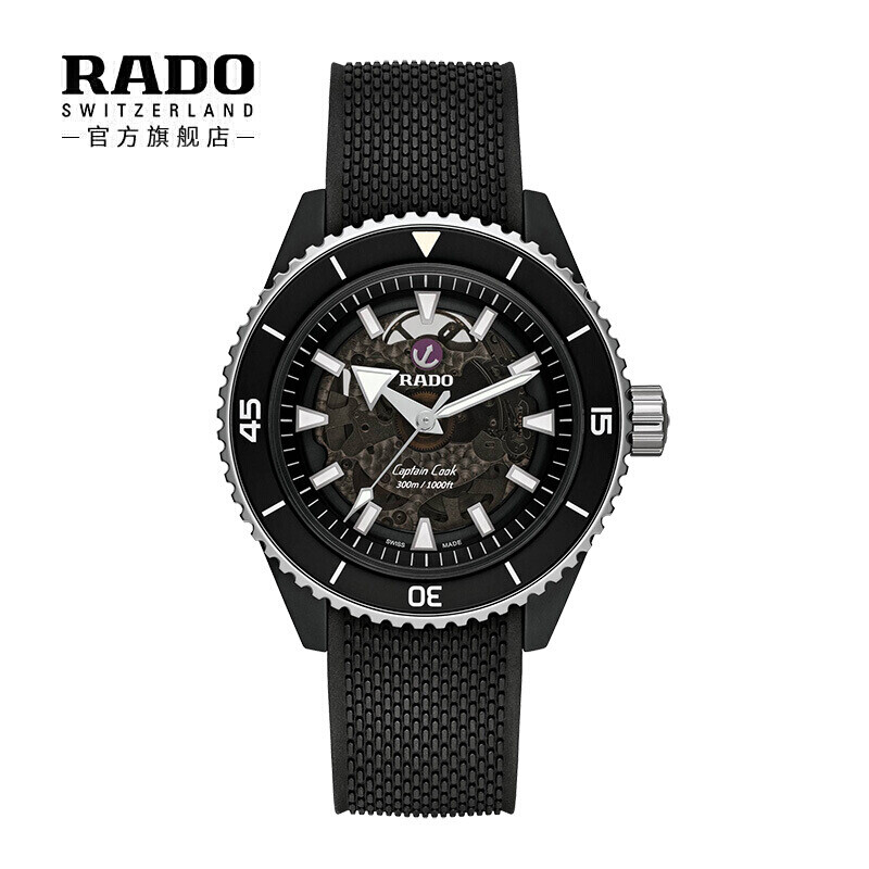 此款产品为RADO 雷达 Captain Cook库克船长系列 男士自动上链腕表 R32127156,自动上链ETA机械机芯 (动力存储可达80小时),蓝宝石玻璃表镜,陶瓷表链。铑色指针刻度、数字、指针和时标均覆有夜光涂层,确保暗光环境下的读时清晰,双面防眩目盒形蓝宝石玻璃表镜。拉丝工艺黑色PVD镀层精钢,镶嵌高科技陶瓷可旋转表圈,刻有白色漆面数字和标记。